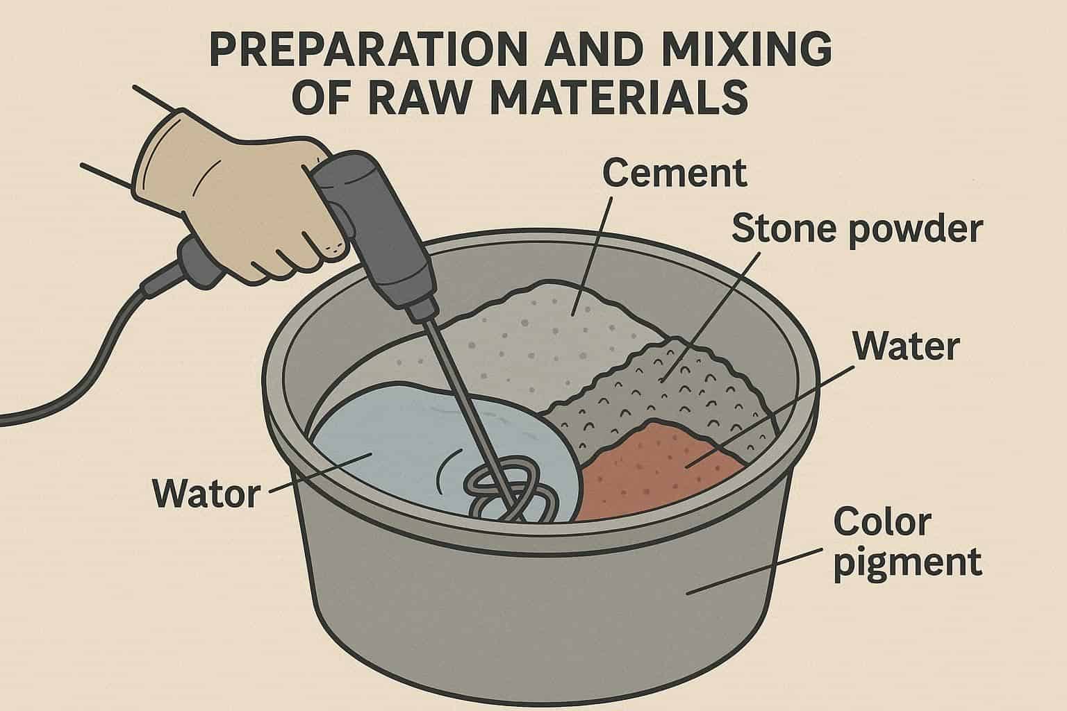 تصویر آماده‌سازی و ترکیب مواد اولیه سنگ مصنوعی در خانه